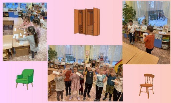 Ребята на занятиях узнали об истории возникновения мебели, уточнили свои представления о материалах, из которых изготавливают мебель. Посмотрели презентацию и узнали о профессиях, связанных с мебельной промышленностью, отгадывали загадки по этой теме. Вспомнили название мебели, узнали, как изготавливается, какая она бывает.