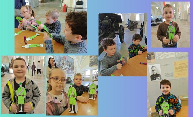 15 февраля мы посетили Артиллерийский музей, экскурсию «Рассказы о солдате», ребята узнали про быт простого солдата времён Великой Отечественной войны, что носил солдат в своём вещмешке, из каких пушек стрелял и в каких «домах» жил. Ребята подержали в руках и рассмотрели котелок, пилотку, нательную рубаху, узнали, для чего нужны были портянки. У детей была уникальная возможность прикоснуться к историческим предметам: они примерили на себя каску, плащ-палатку и шинель через плечо и сделали сами на память фигурку солдата!