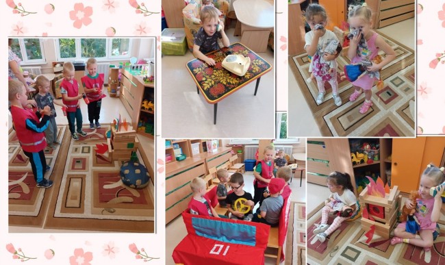Мы обсудили, что такое пожарная безопасность. В группе мы поиграли с ребятами в сюжетно-ролевую игру «Пожарные», где дети разыгрывали опасную ситуацию: в доме начался пожар, что нужно делать? По вызову выехала пожарная машина с доблестными пожарными, которые с легкостью потушили пожар. Мы закрепили название профессии «пожарный» и вспомнили основные правила пожарной безопасности.