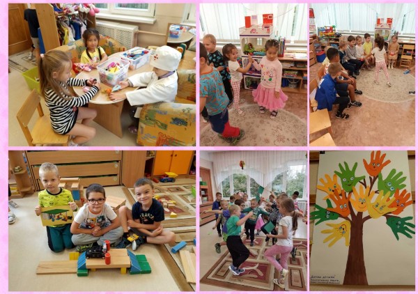 В пятницу наши ребята продолжили играть в разнообразные игры. Из большого напольного конструктора мальчики построили детский сад, а девочки – игровую площадку и сюжетно-ролевая игра «Детский сад» началась. Сначала в детский сад завезли мебель и игрушки, воспитатели всё расставили по местам и начали принимать детей, повара готовили очень вкусную еду, а врач следила за здоровьем деток. В игру включились все и мальчики и девочки, менялись ролями, и игра начиналась вновь, ребята с радостью играли в игру, всем было весело.
